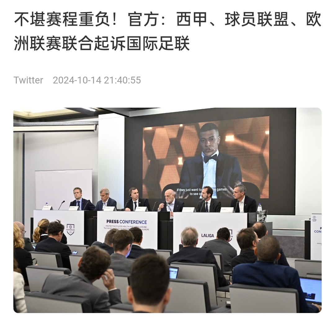 實(shí)際上,近年來密集賽程已經(jīng)在歐洲足壇引發(fā)了廣泛的不滿。五大聯(lián)賽的球員、主帥以及高層都在呼吁賽程改革。甚至要采取狀告和罷工的方式尋求改變。