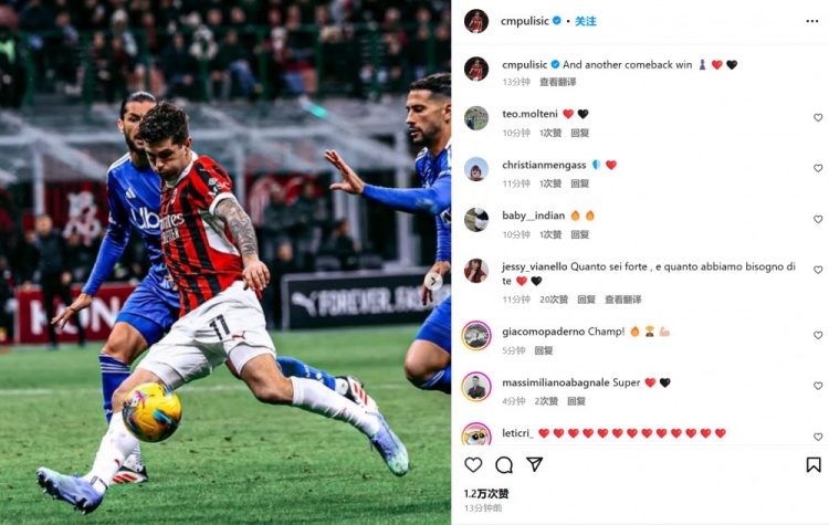 他也在賽后通過社媒曬出自己的進(jìn)球瞬間照,并配文:“那么又是一場(chǎng)逆轉(zhuǎn)??”。普利西奇本賽季已經(jīng)為米蘭38場(chǎng)貢獻(xiàn)15球7助攻。