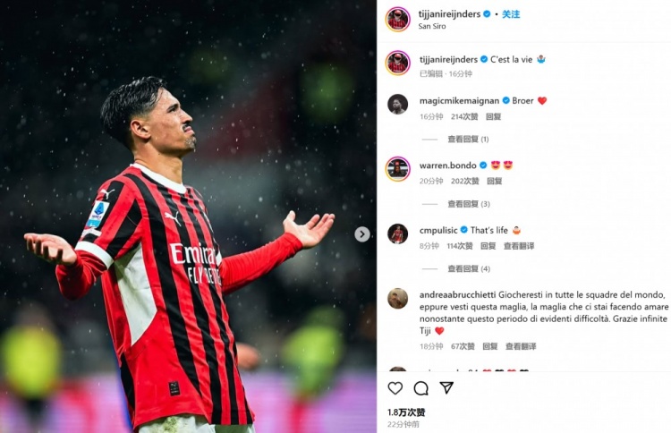 邁尼昂、邦多、普利西奇等多位隊友也現(xiàn)身評論區(qū)互動。