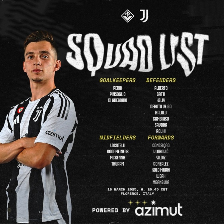 3月16日訊 周一凌晨1點意甲第29輪,尤文客場對陣佛羅倫薩。賽前尤文公布了本場比賽的大名單,小孔塞桑、薩沃納傷愈回歸。