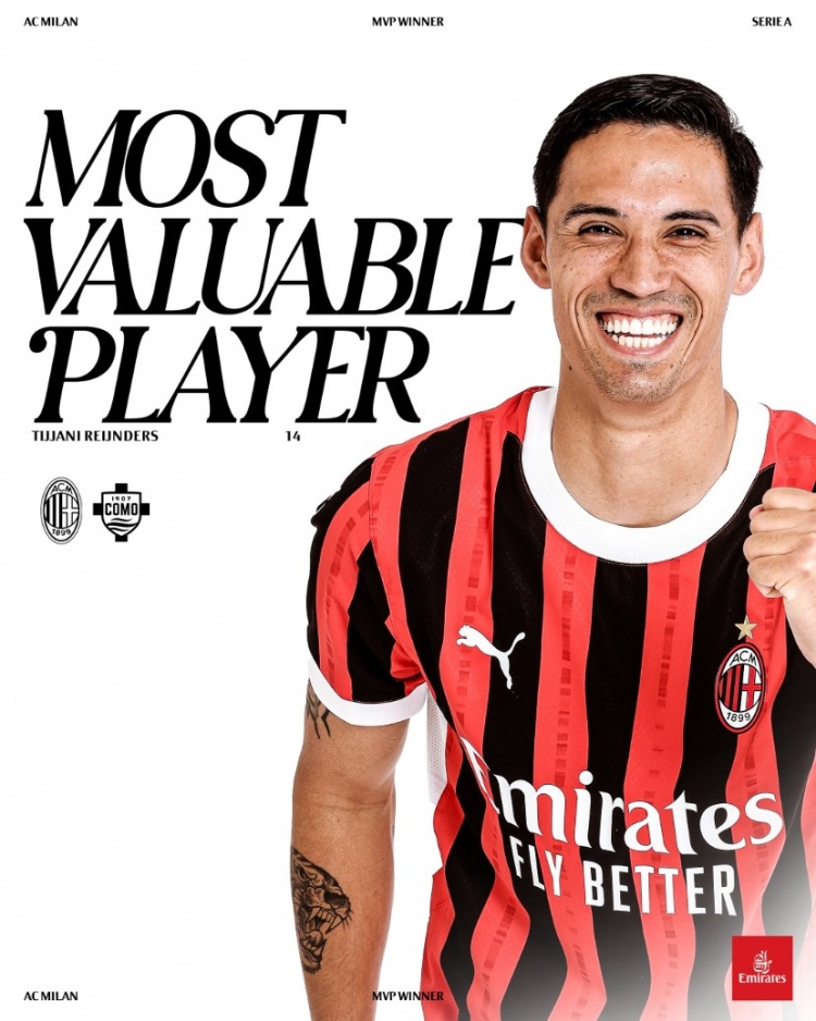 賽后,AC米蘭俱樂(lè)部官方宣布,賴因德斯當(dāng)選為本場(chǎng)比賽隊(duì)內(nèi)最佳球員。