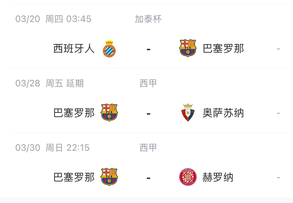 【相關(guān)閱讀】瘋狂加班????巴薩補(bǔ)賽被安排在27日,隊內(nèi)國腳主力幾乎都要受影響