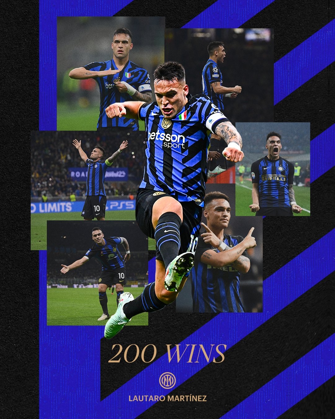 國(guó)米官方數(shù)據(jù)統(tǒng)計(jì)顯示,27歲的勞塔羅也達(dá)成了俱樂(lè)部200勝里程碑。國(guó)米官推也表示:“我們的旗幟人物已經(jīng)達(dá)成了藍(lán)黑生涯200勝。”
