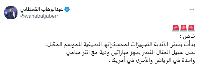 沙特媒體人wahabaljaberr消息,利雅得勝利計劃與邁阿密國際進行友誼賽。