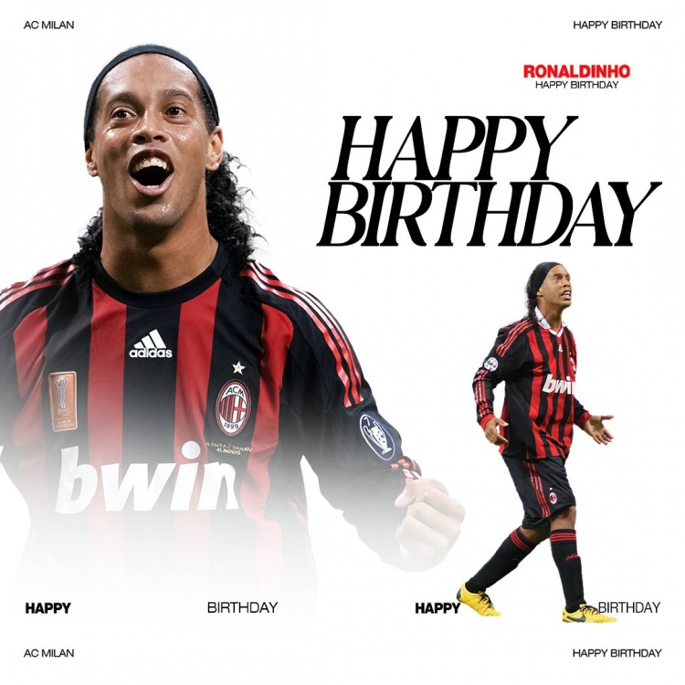 米蘭官方社媒曬出為羅納爾迪尼奧制作的生日海報(bào),配文:“派對(duì)繼續(xù)!祝你度過(guò)愉快的一天,羅納爾迪尼奧!”