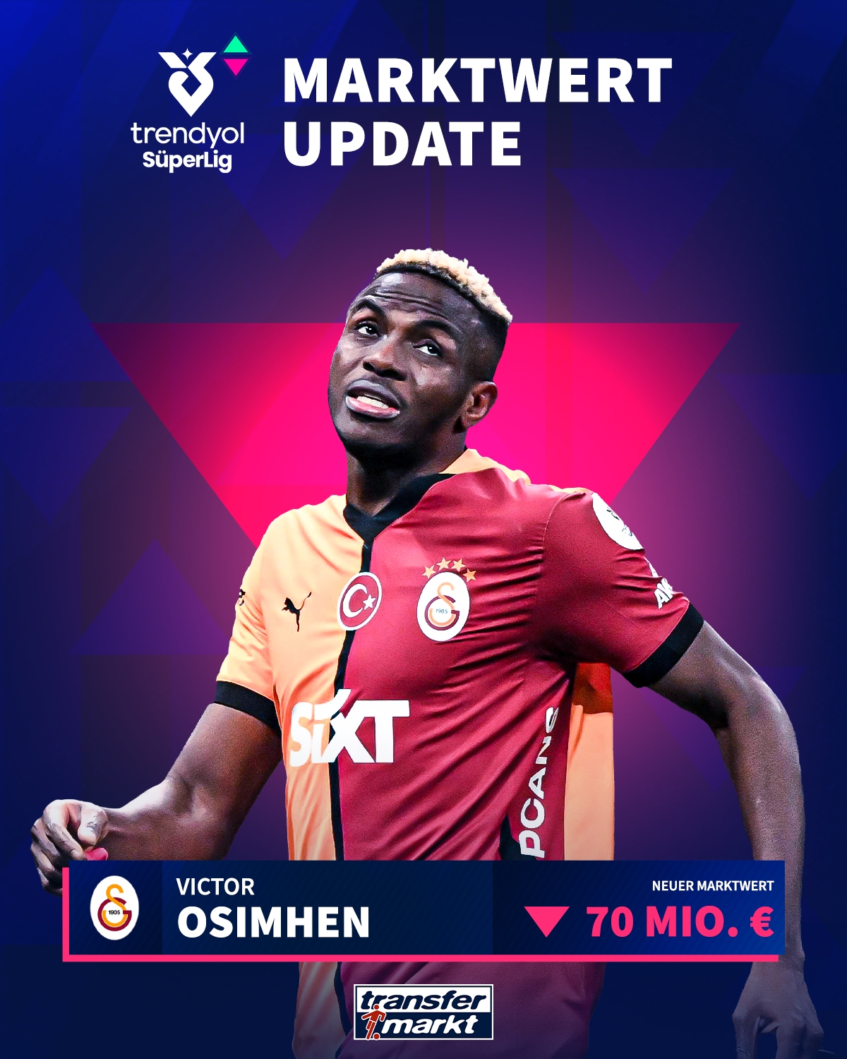 自夏窗從那不勒斯租借加盟加拉塔薩雷以來,奧斯梅恩的身價(jià)已經(jīng)從1億歐,不斷下跌來到7000萬歐。