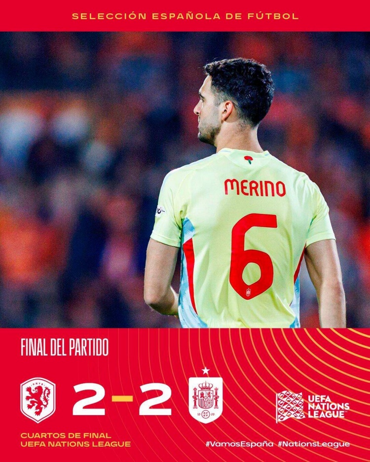 梅里諾補(bǔ)時(shí)絕平,荷蘭2-2西班牙,西班牙歐國聯(lián)五連勝終結(jié)。