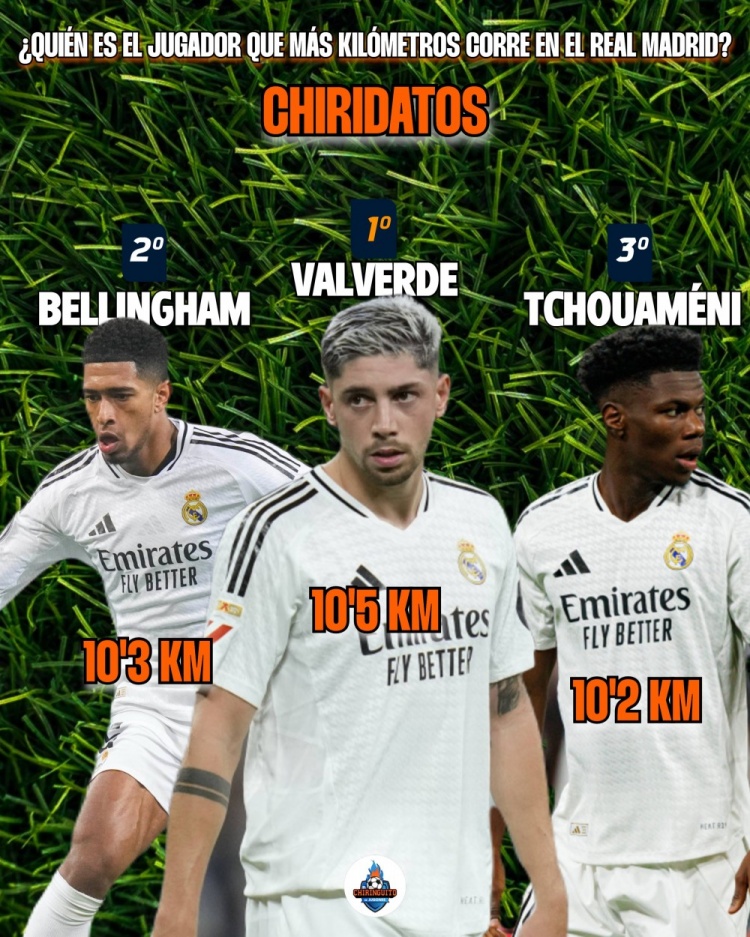 巴爾韋德本賽季場(chǎng)均跑動(dòng)10.5km皇馬隊(duì)內(nèi)最多,貝林瓊阿梅尼二三位
