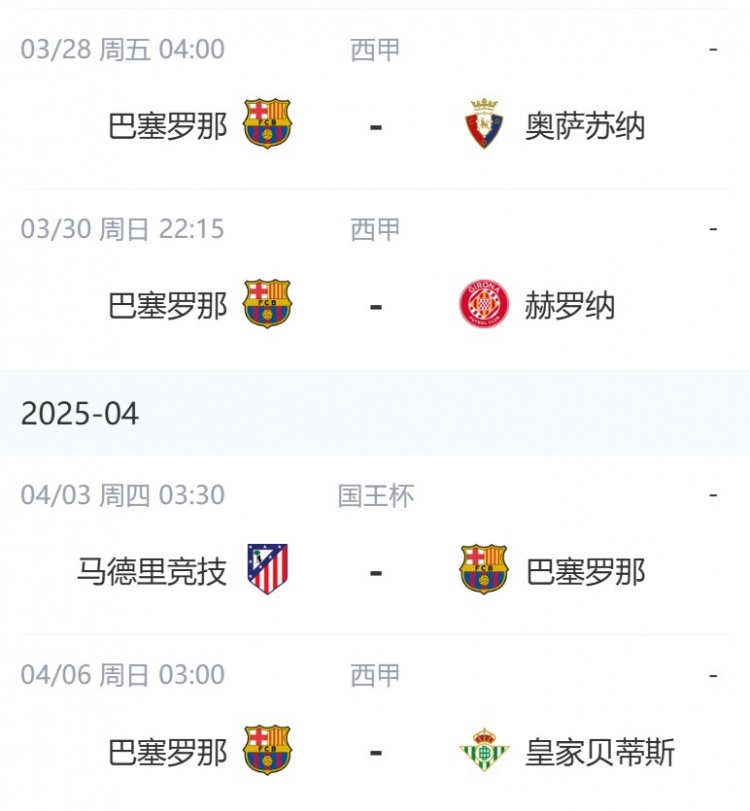 巴薩未來賽程↓