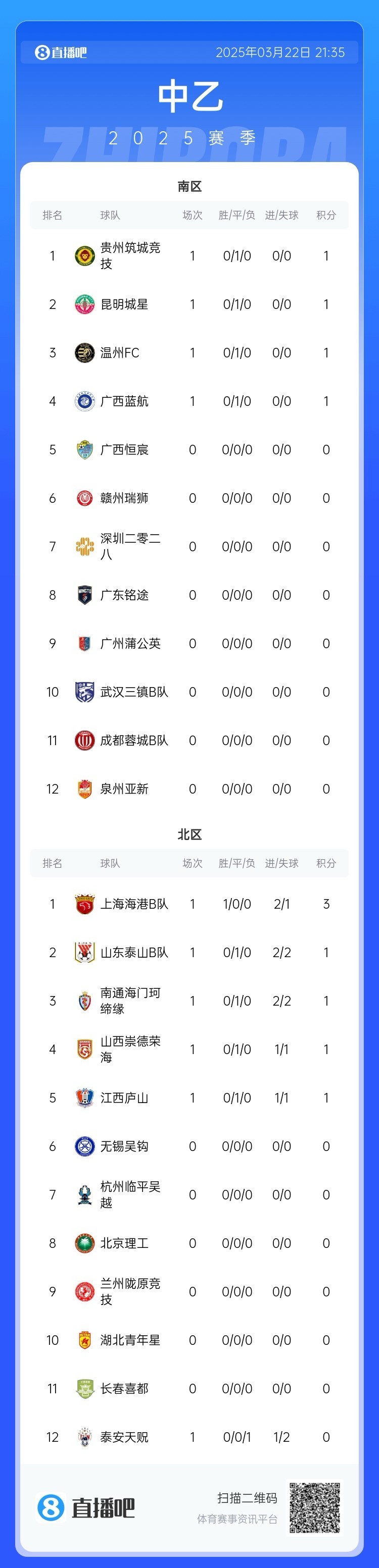 3月22日訊 2025賽季中乙聯(lián)賽今天拉開帷幕,在首日進行的5場比賽中,海港B隊擊敗泰安天貺,泰山B隊2-2海門珂締緣。