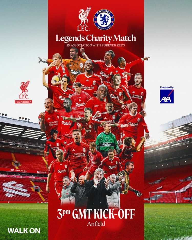 3月22日訊 利物浦傳奇隊(duì)將在安菲爾德的慈善賽中對(duì)陣切爾西傳奇隊(duì),利物浦官方社媒曬出海報(bào),預(yù)熱這場(chǎng)比賽。
