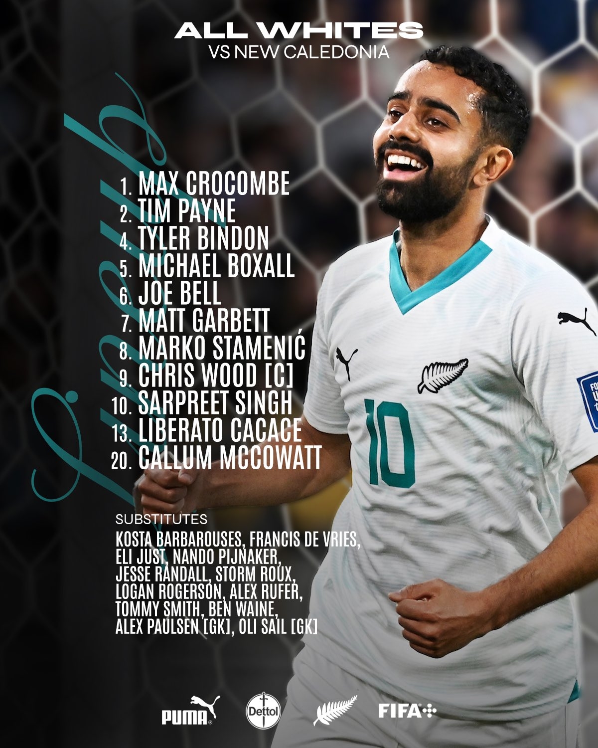 新西蘭首發(fā):1-馬克斯-克羅科姆、2-蒂姆-佩恩、4-泰勒-賓頓、5-米切爾-伯克薩爾、6-喬-貝爾、7-馬修-加伯特、8-馬科-斯特梅克、9-克里斯-伍德、10-薩普里特-辛格、13-里貝拉托-卡卡塞、20-卡勒姆-麥考瓦特
