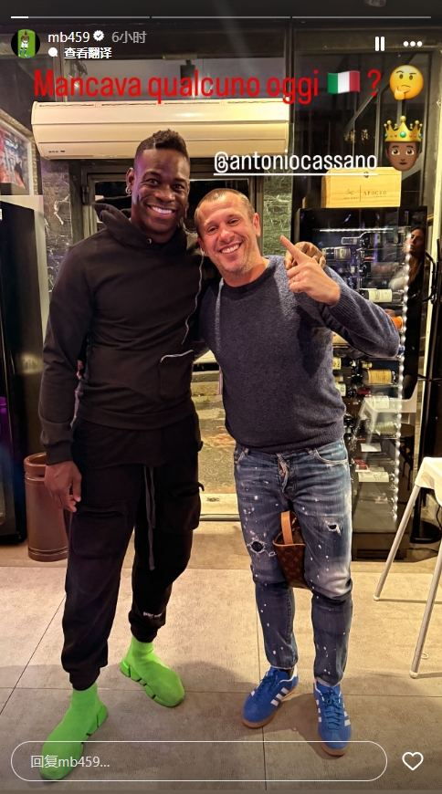 3月24日訊 巴洛特利更新社媒動態(tài),曬出與卡薩諾的合照。