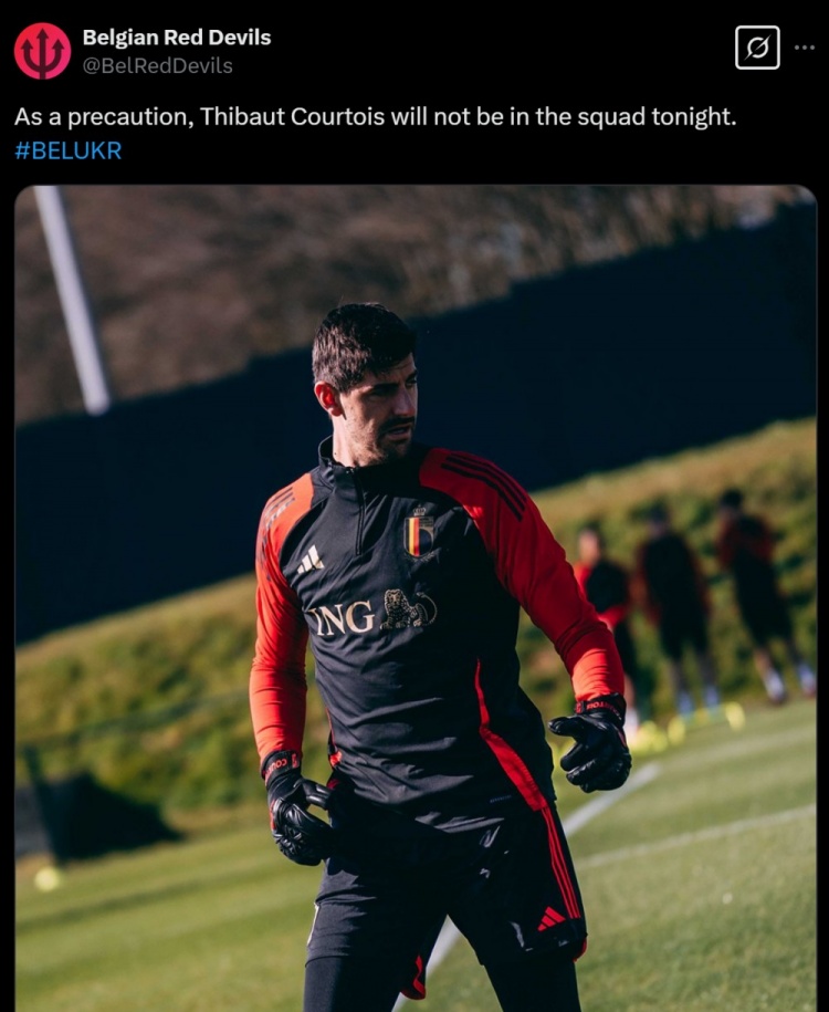 對(duì)此,比利時(shí)國(guó)家隊(duì)表示,作為預(yù)防措施,庫(kù)爾圖瓦沒有進(jìn)入比賽陣容。