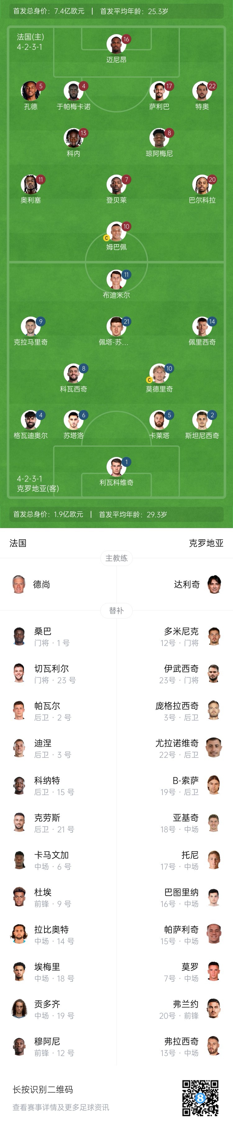 法國首發(fā):16-邁尼昂、5-孔德、4-于帕梅卡諾、17-薩利巴、22-特奧、13-科內(nèi)、8-瓊阿梅尼、11-奧利塞、7-登貝萊、20-巴爾科拉、10-姆巴佩