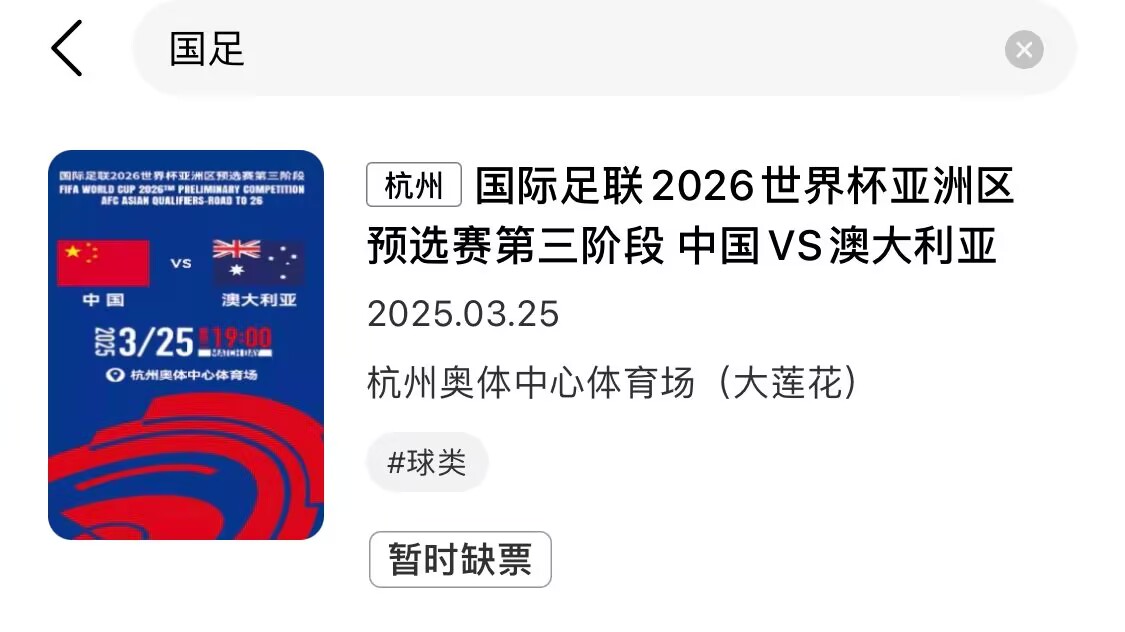 有錢也買不到了!黃牛平臺顯示,國足vs澳大利亞已缺票