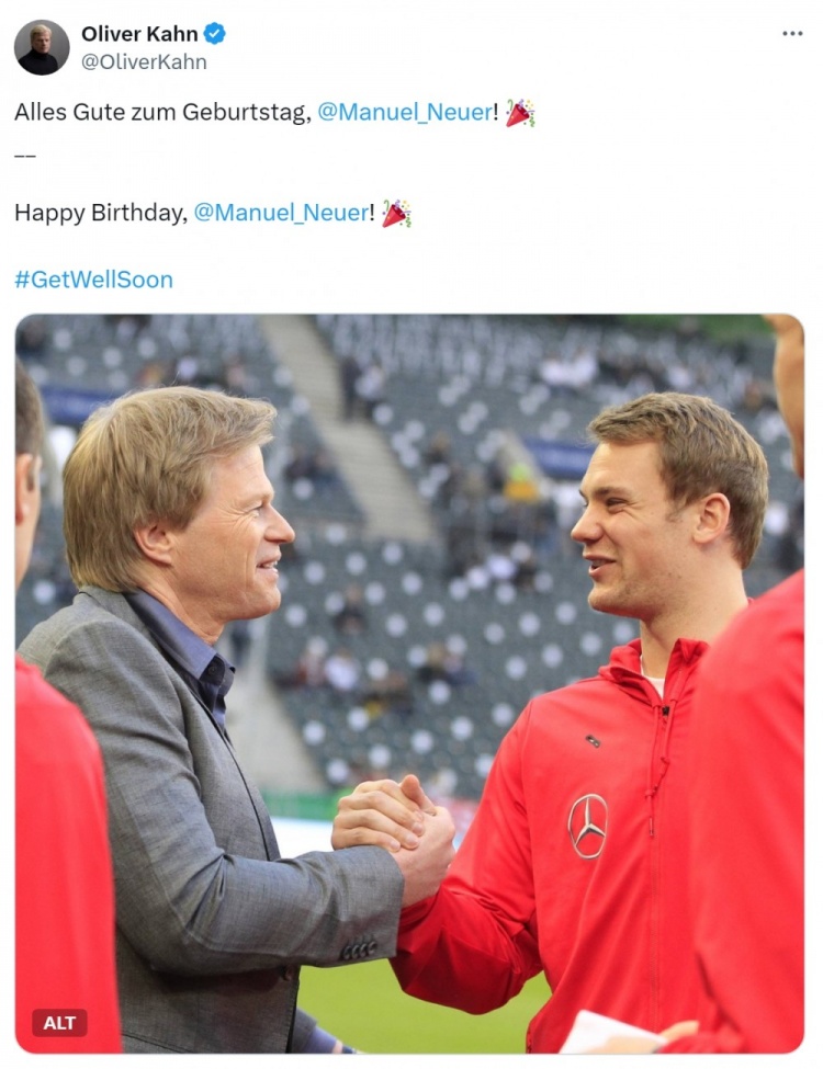 卡恩社媒曬出與諾伊爾的合照,配文:“生日快樂(lè),諾伊爾!”