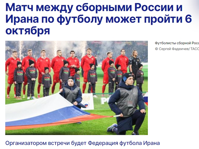 03月27日訊 俄羅斯塔斯新聞社消息,俄羅斯將于10月6日與伊朗進(jìn)行友誼賽。