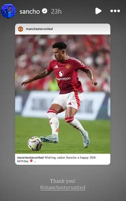 3月27日訊 桑喬最近在Instagram轉(zhuǎn)發(fā)了曼聯(lián)為他慶生的動(dòng)態(tài),引發(fā)曼聯(lián)球迷熱議。