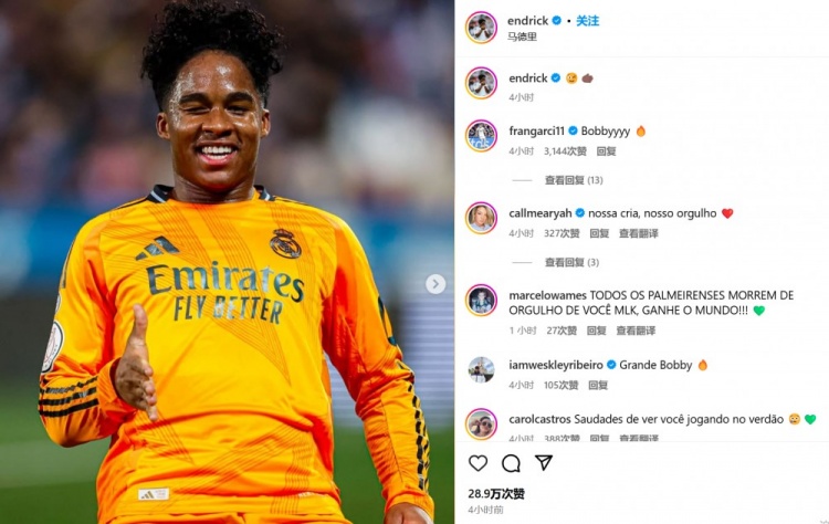 第25分鐘,皇馬攻勢(shì)打進(jìn)禁區(qū),萊加內(nèi)斯禁區(qū)內(nèi)解圍失誤,門前恩德里克輕松破門。他也在賽后通過社媒曬出自己的滑跪慶祝照,并附上“????????????”表情。