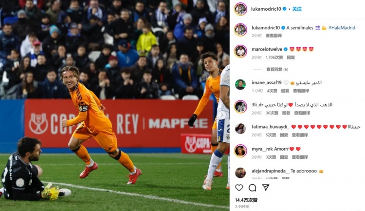 2月6日訊 皇馬在本輪國王杯3-2絕殺萊加內(nèi)斯,羅德里戈助攻莫德里奇首開記錄。