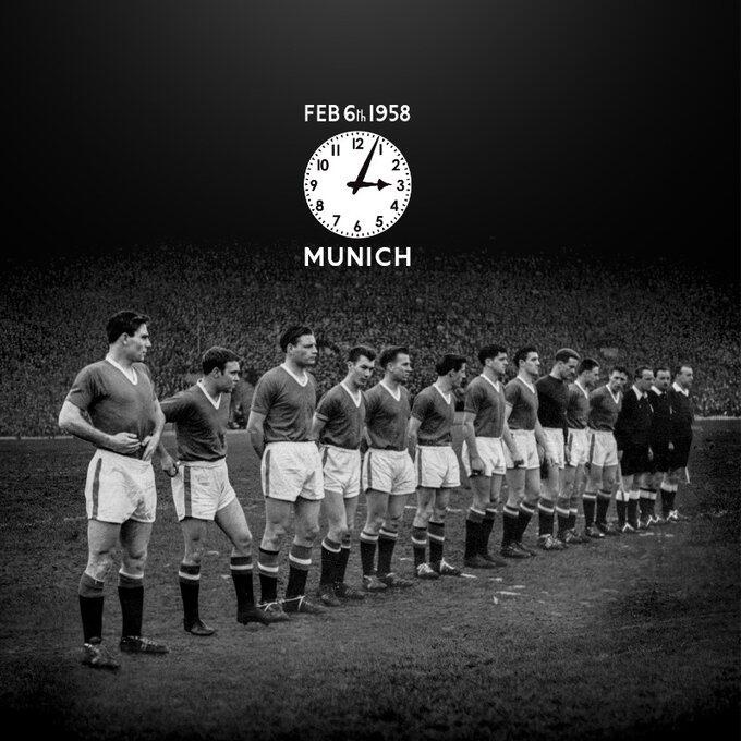 1958年2月6日,載著曼聯(lián)隊(duì)員和球迷以及隨隊(duì)記者的飛機(jī)在西德慕尼黑機(jī)場(chǎng)覆有積雪的跑道上第三次嘗試起飛時(shí)失敗墜毀,機(jī)上當(dāng)時(shí)44名乘客以及機(jī)組人員中的23人不幸遇難,遇難者包括8名曼聯(lián)球員以及3名俱樂部的職員。