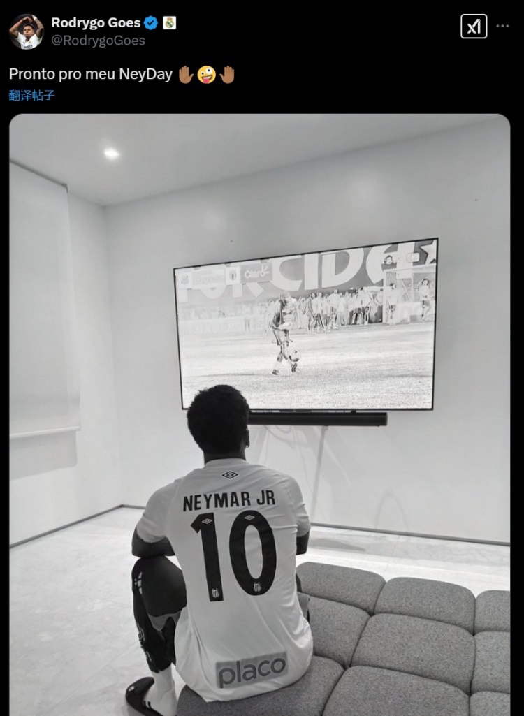 羅德里戈曬出自己身披內(nèi)馬爾球衣守候在電視機(jī)之前的黑白照片,并表示:“已為我的內(nèi)馬爾之日做好準(zhǔn)備?!?/p>