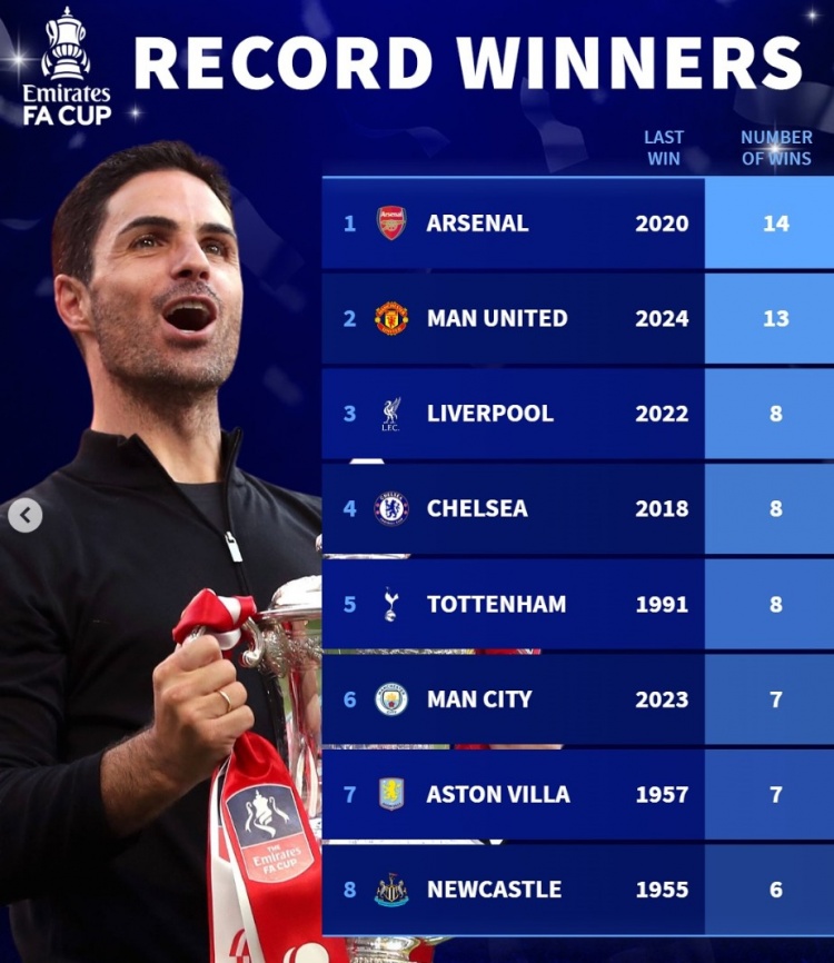 德轉(zhuǎn)列足總杯歷史奪冠榜:及最近一次足總杯奪冠時間