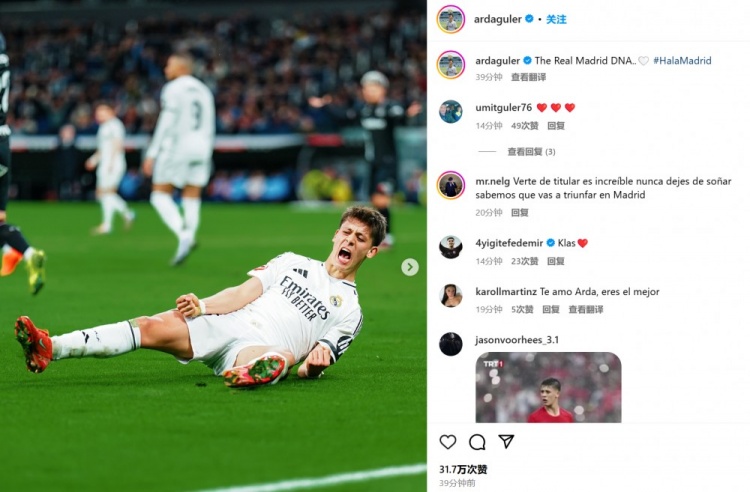 居勒爾也在賽后通過社媒曬出自己的慶祝照并配文:“皇馬DNA!”