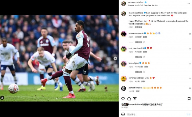 拉什福德賽后也在個人社媒曬出本場照片,配文寫道:“非常激動終于收獲在維拉首粒進(jìn)球,并且?guī)椭蜿?duì)晉級半決賽。祝大家母親節(jié)&開齋節(jié)快樂?!?/p>