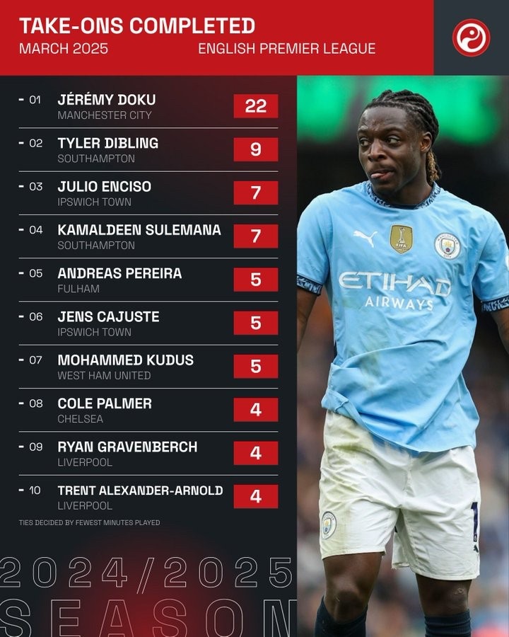 4月1日訊 據(jù)Squawka統(tǒng)計,多庫是在英超三月份的比賽中完成過人次數(shù)最多的球員。
