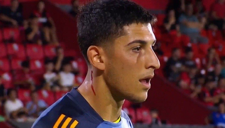 4月1日訊 在本周一進(jìn)行的阿甲聯(lián)賽,博卡門將被對(duì)方球迷丟下的玻璃劃傷脖子后流血。