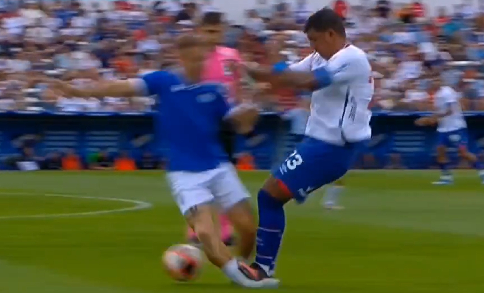 砸人飯碗啊!烏拉圭聯(lián)賽驚現(xiàn)雙腿跳起搶斷????對手小腿被踩變形