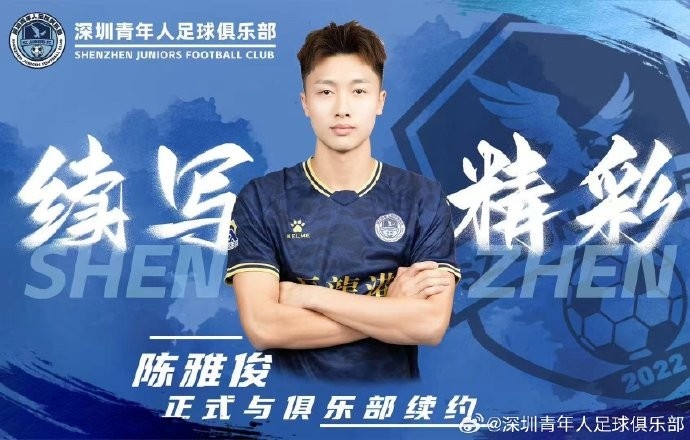 2月6日訊 中甲新軍深圳青年人宣布,俱樂部與陳雅俊、盧競森、鄭智銘完成續(xù)約。