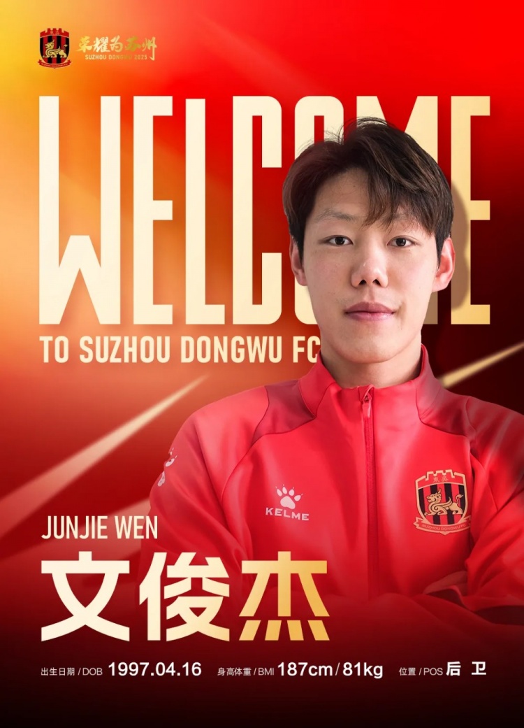 經(jīng)友好協(xié)商并達(dá)成一致,球員文俊杰、胡靖、朱越、蔣志鑫、藏哈爾·拜沙提汗、吳俊杰正式加盟蘇州東吳足球俱樂部,為蘇州東吳出戰(zhàn)新賽季各項(xiàng)賽事。