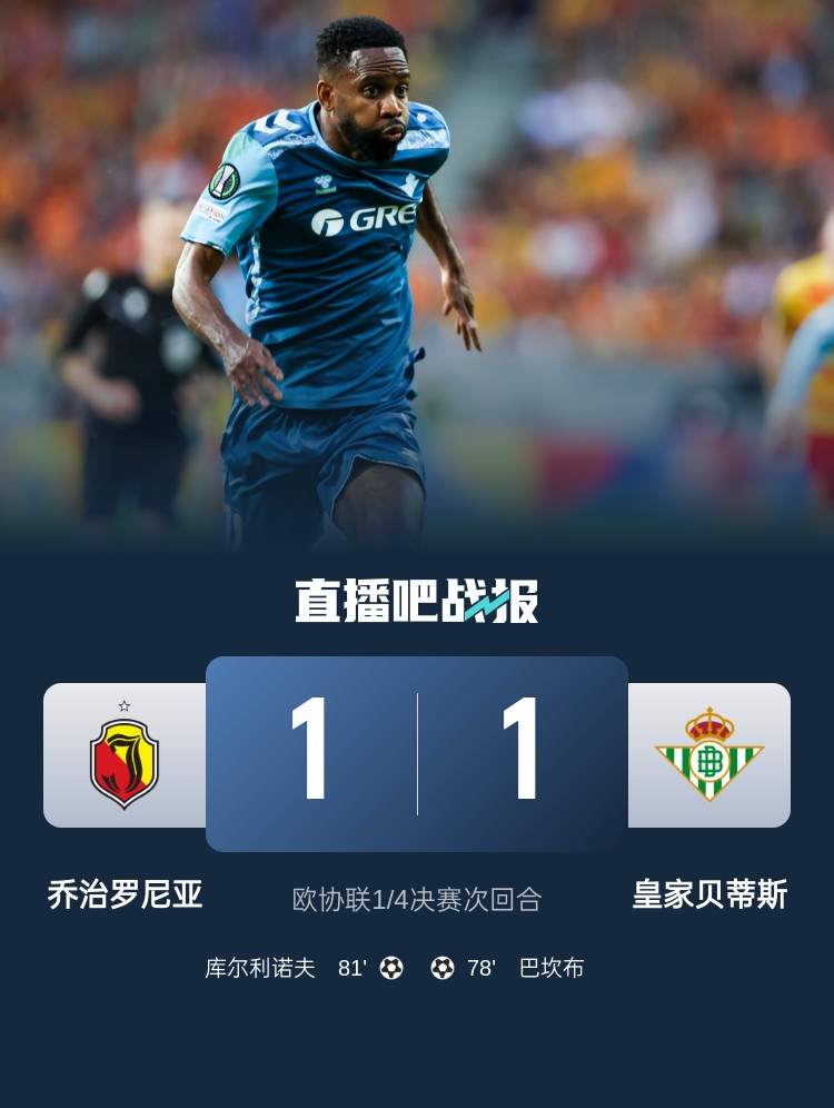 巴坎布破門,貝蒂斯1-1戰(zhàn)平喬治羅尼亞,兩回合總比分3-1淘汰對手!半決賽將迎戰(zhàn)佛羅倫薩。