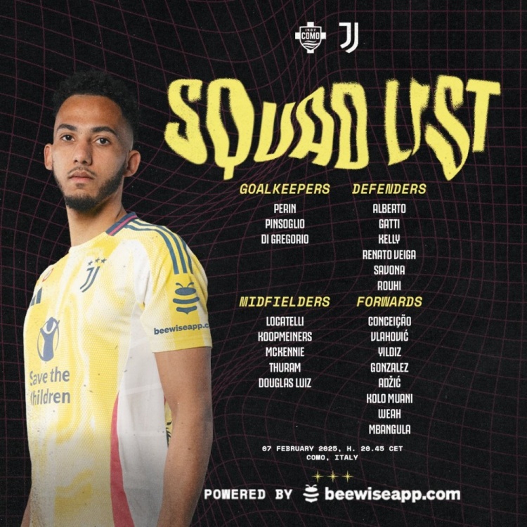 尤文本場大名單: