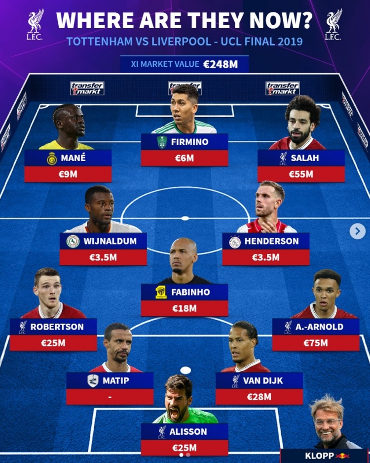 2月7日訊 利物浦在本輪聯(lián)賽杯4-0大勝熱刺,《轉(zhuǎn)會市場》統(tǒng)計顯示兩隊在6年前的歐冠決賽首發(fā)共計僅剩6人。