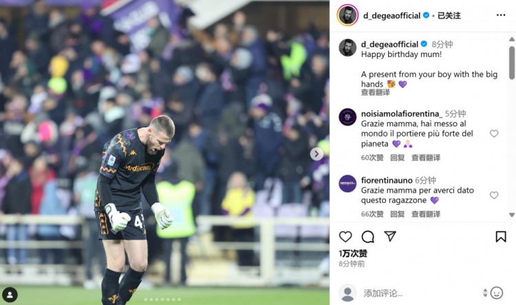本賽季意甲首次零封國米,德赫亞社媒曬照:送給母親的生日禮物