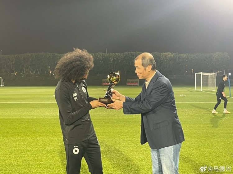馬德興在社媒寫道:“由體壇傳媒集團和體壇周報聯(lián)合組織的2024年亞洲金球獎評選活動已經(jīng)揭曉,在由亞洲40多個國家和地區(qū)的足球記者參與的投票中,來自卡塔爾的阿菲夫獲得最高分,榮獲2024年亞洲金球獎。新春期間,我作為體壇傳媒的代表專程趕赴多哈,當?shù)貢r間6日下午在薩德俱樂部的訓(xùn)練場地,于訓(xùn)練開始之前專門進行了一個簡短的頒獎儀式,將金球授予阿菲夫。阿菲夫在獲獎之后,薩德隊的隊友一起祝賀阿菲夫?!?/p>