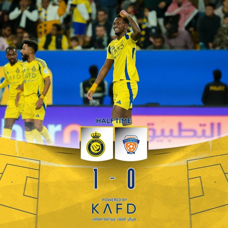 半場(chǎng)戰(zhàn)罷,利雅得勝利暫1-0費(fèi)哈。