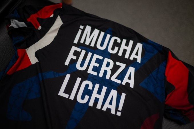 這件熱身球衣上寫著:“堅強(qiáng),Licha!”(Licha為利桑德羅的昵稱)