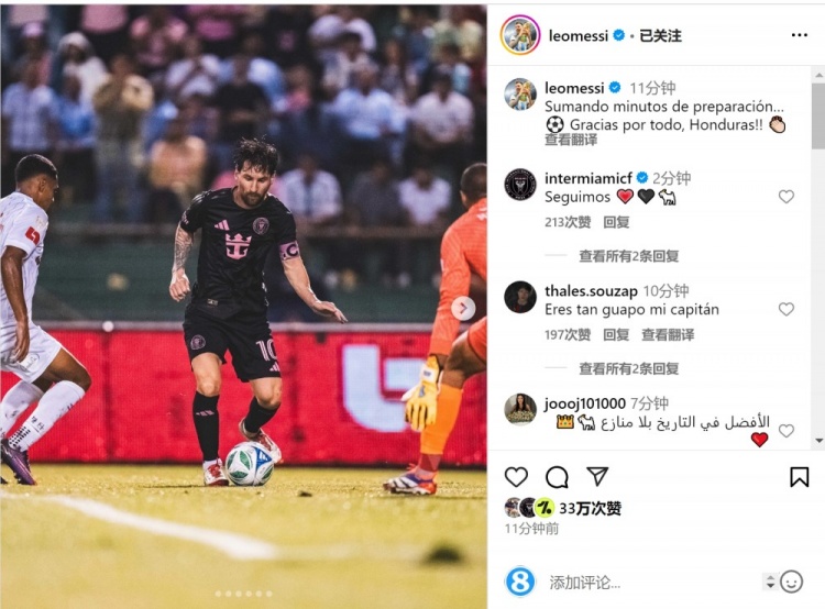 此役在洪都拉斯奧林匹克大都會球場進行,賽后梅西在社交媒體上曬出自己的照片,配文:“備戰(zhàn)階段增加了一些比賽時間,感謝你們所做的一切,洪都拉斯!”