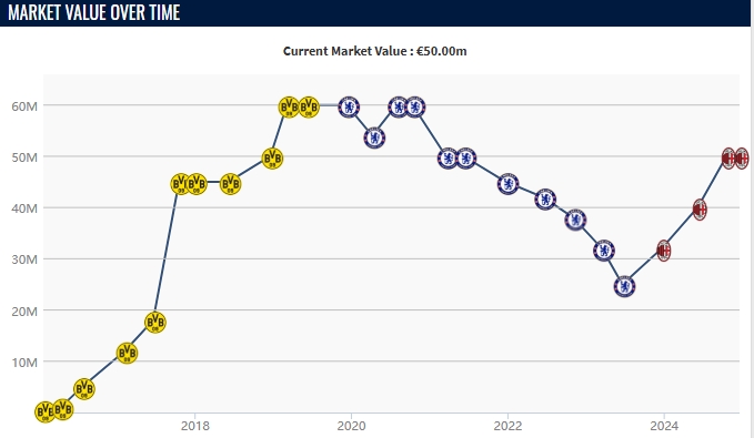 本賽季AC米蘭雖然經(jīng)歷了換帥等風(fēng)波,但普利西奇依然保持著穩(wěn)定輸出。26歲的普利西奇身價也從離開切爾西時的2500萬歐,漲到了5000萬歐。