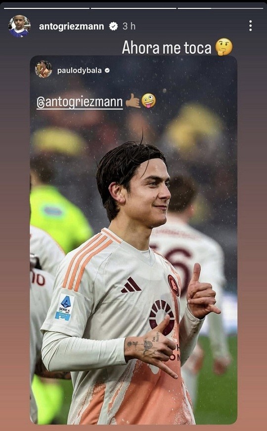 2月10日訊 迪巴拉在本輪意甲進(jìn)球后模仿格列茲曼的慶祝動(dòng)作,而格列茲曼隨即進(jìn)行了互動(dòng)回應(yīng)。