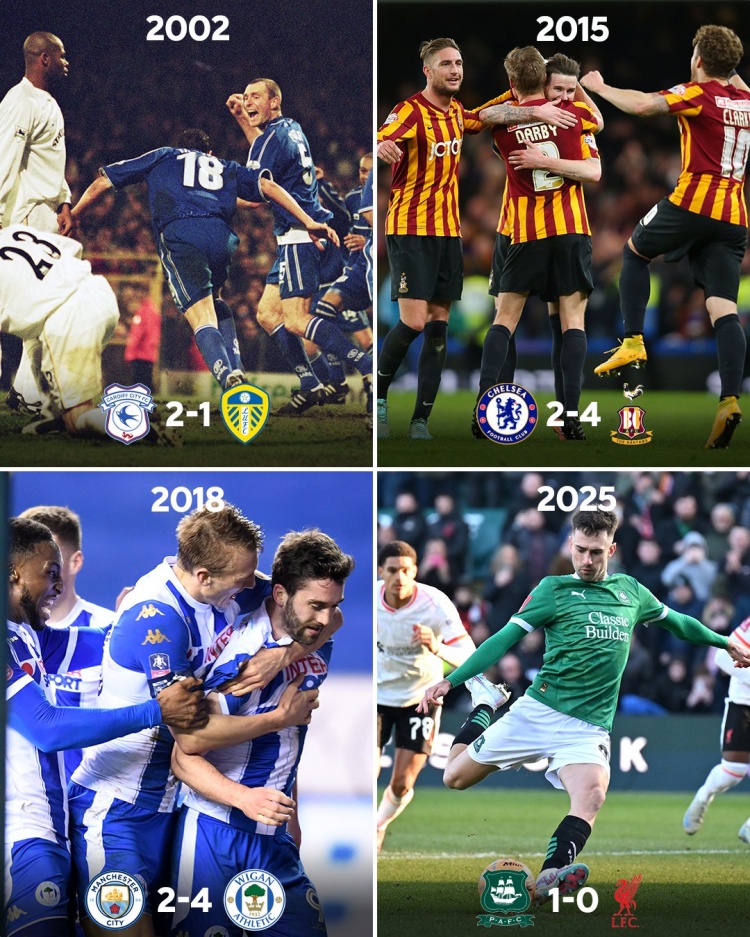 據(jù)足總杯官方統(tǒng)計(jì),利物浦是足總杯歷史上第4支被低級(jí)別聯(lián)賽球隊(duì)淘汰的英超領(lǐng)頭羊,此前3支是利茲聯(lián)(2002)、切爾西(2015)、曼城(2018)。
