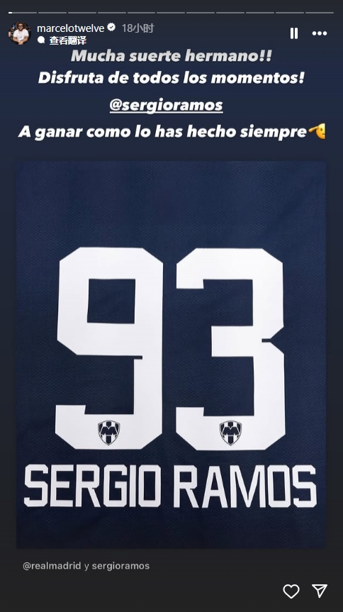 2月11日訊 38歲西班牙中衛(wèi)拉莫斯自由身加盟蒙特雷,身披93號球衣,前皇馬隊友馬塞洛社媒為他送上祝福。