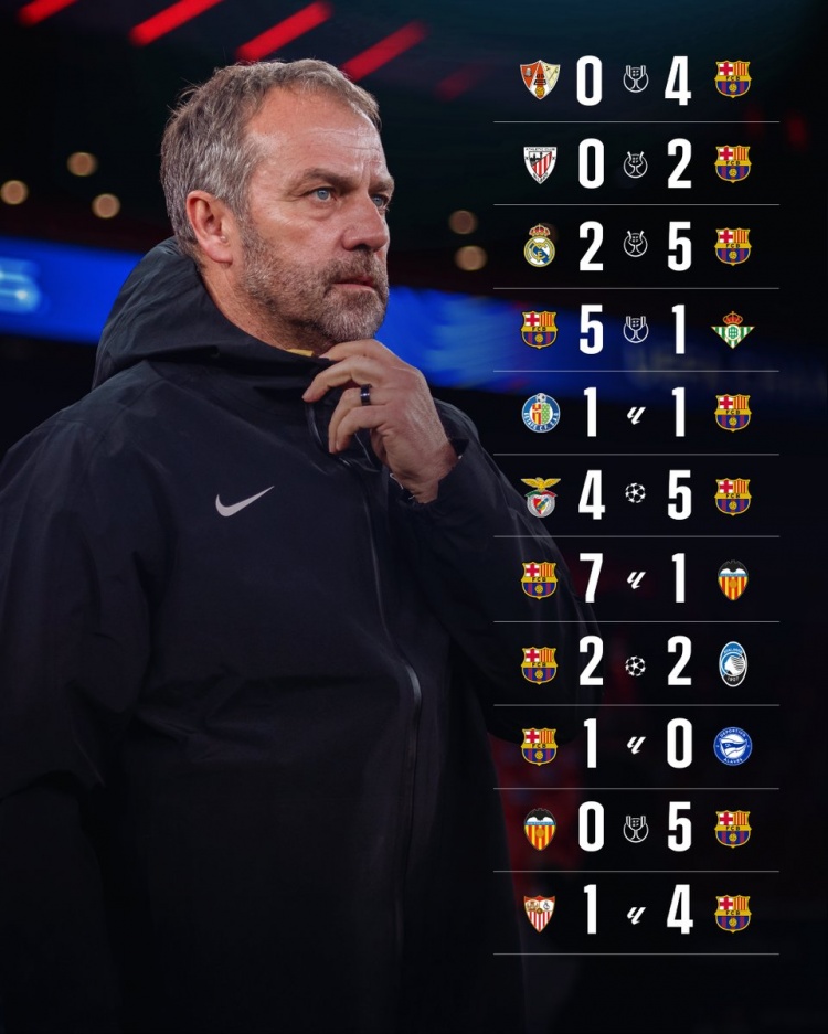 2月11日訊 巴薩官方更新社媒動態(tài),曬出球隊2025年開始以來的戰(zhàn)績,巴薩9勝2平保持不敗。