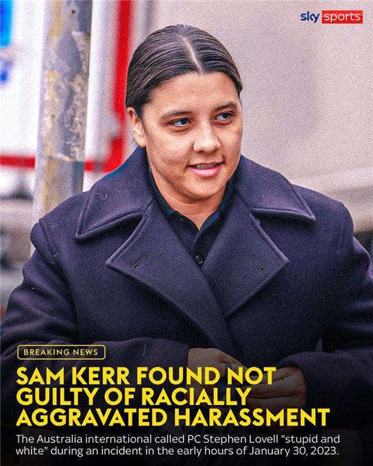 這位澳大利亞女足國(guó)腳于2023年1月30日凌晨在倫敦西南部與倫敦警察廳警官斯蒂芬-洛弗爾發(fā)生沖突時(shí),稱對(duì)方為"愚蠢的白人"。當(dāng)?shù)鼗始曳ㄔ号銓張F(tuán)在當(dāng)?shù)貢r(shí)間周二經(jīng)過(guò)4小時(shí)17分鐘審議后,作出無(wú)罪判決。