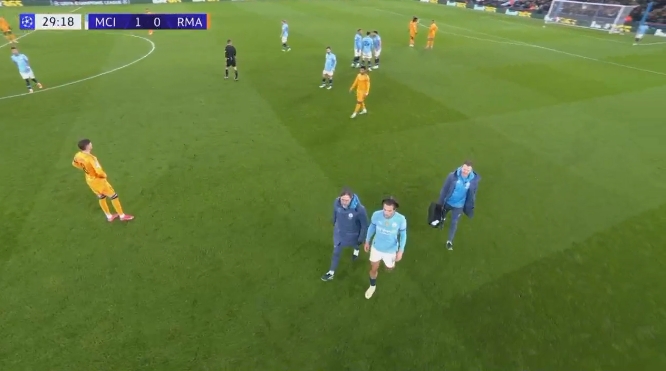 格拉利什第30分鐘傷退,福登登場